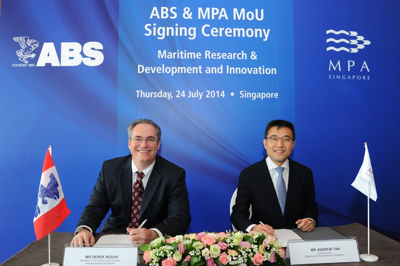 (Singapore) ABS, a leading provider of global marine and offshore classification services, and the Maritime and Port Authority of Singapore (MPA) signed a memorandum of understanding (MOU) today to promote maritime research and development (R&D) and innovation.