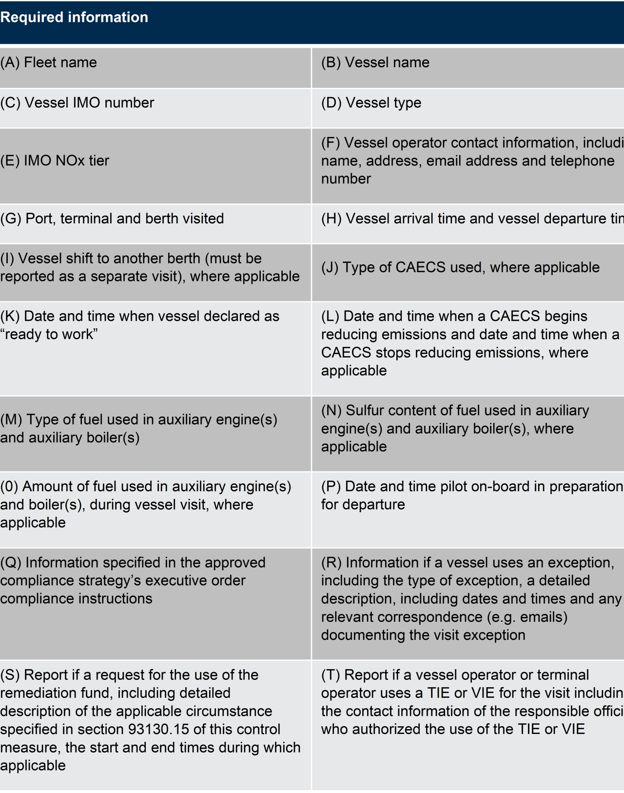 A fleet operator does not have to provide a list of vessels registered in their fleet; rather, each vessel should report the fleet that it belongs to for each visit. Additionally, if a VIE is used for a visit, the fleet operator must confirm to CARB that the VIE is approved for use for that visit.
