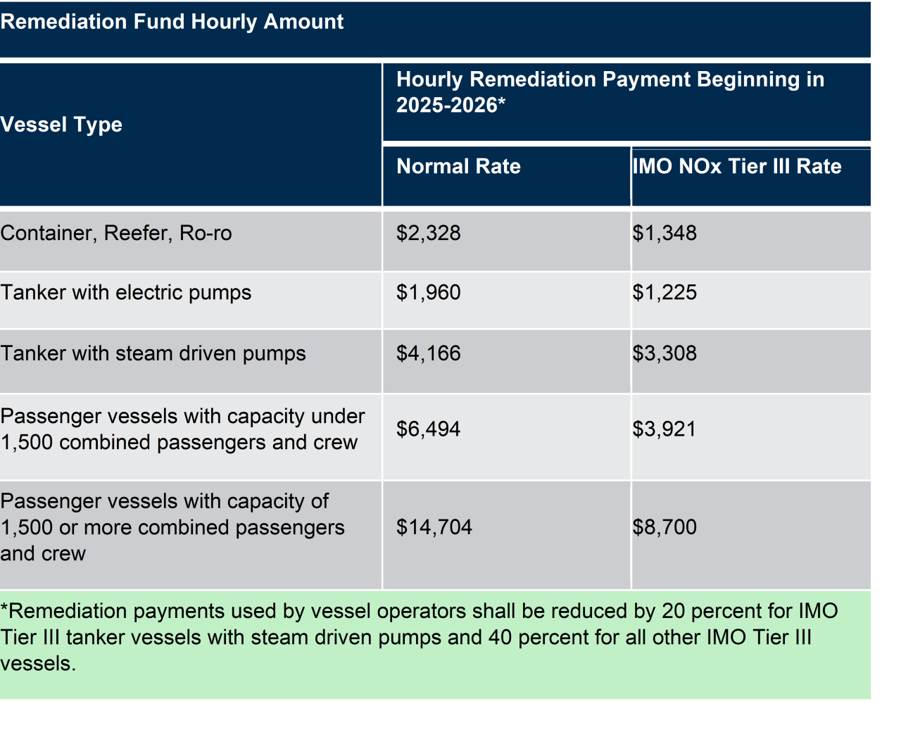 f. Remediation: Requirements of the 2020 Regulation do not apply during the portion of a visit that qualifies and uses the remediation fund option. More information on the remediation fund is provided in (add link to) Tab 6 Remediation & Enforcement